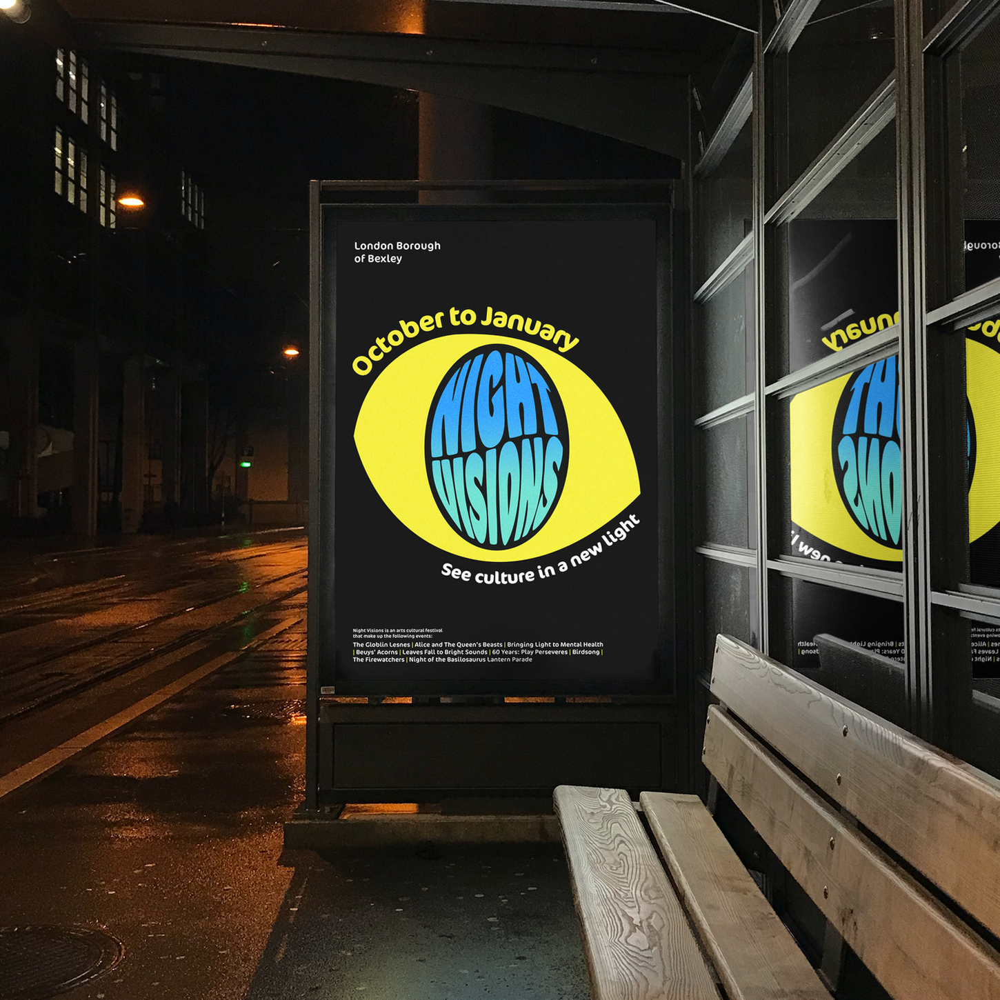 I was given the great opportunity to design a visual identity for London Borough of Bexley's cultural art festival. The client wanted a design that represented a cat's eye keeping it simple yet alluring. I was inspired by Stephen King's book 'Cat's Eye' and created a logo that based around the image. I also imposed the text onto the design which sits in the pupil of the cat's eye. The logo was created to promote Bexley's light-themed evening arts festival which is funded by the Art Council England's National Lottery Project Grants.